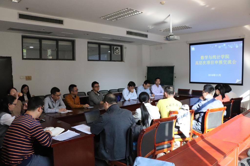 本网讯 11月29日下午,我院在南校区院系楼152会议室举行“数学与统计学院2019年高层次项目申报指导会(一)”,学院邀请国家级项目负责人张倩生教授、王军威教授、赵绪哲博士作申报经验分享和交流指导。此次指导会由数学与统计学院院长王军威教授主持。我院龙会典副院长、以及今年拟申报国家级课题的教师参加了此次指导会。