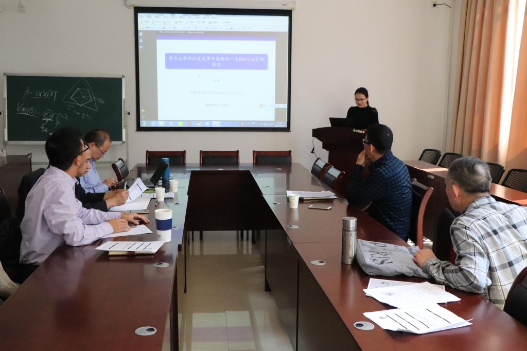 朱珺博士报告主题为“带终止事件的复发事件数据的一类Box-Cox变换模型”,对带终止事件的复发事件数据研究了一类Box-Cox变换模型,比例均值模型和优势比模型为其特例。其中对复发事件计数过程的条件均值函数和基准均值函数都进行Box-Cox变换,对终止事件时间考虑了比例风险模型。利用逆概率生存加权的思想,通过偏得分函数构建估计方程来估计模型参数,并且建立了所得估计量的渐进性质。最后通过数值模拟评估了所提出估计量的有限样本性质并将该方法应用于一组慢性心脏衰竭疾病数据。