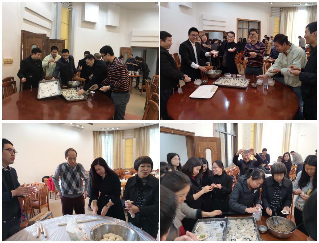 会后,全院教职工到南校区八角楼餐厅进行迎新年-包饺子活动。教工们自己擀面、包饺子,活动现场喜气洋洋、其乐融融,展现了和谐温馨的数统大家庭形象。