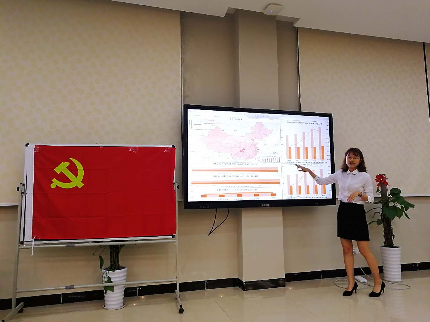喜迎祖国七十载,建功立业新时代。5月23日晚,数统学院第一届“数说中国”数据可视化大赛决赛暨特色组织生活会在南校区实验楼E110举行,学院党总支副书记余海波、学院办公室主任毛竹、团委书记薛达、辅导员陈宣慧出席本次活动。
