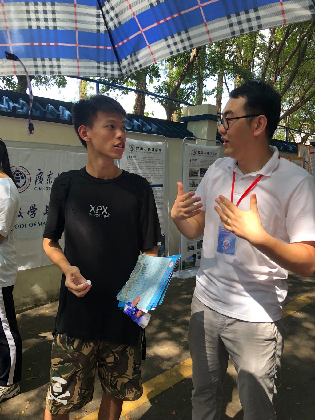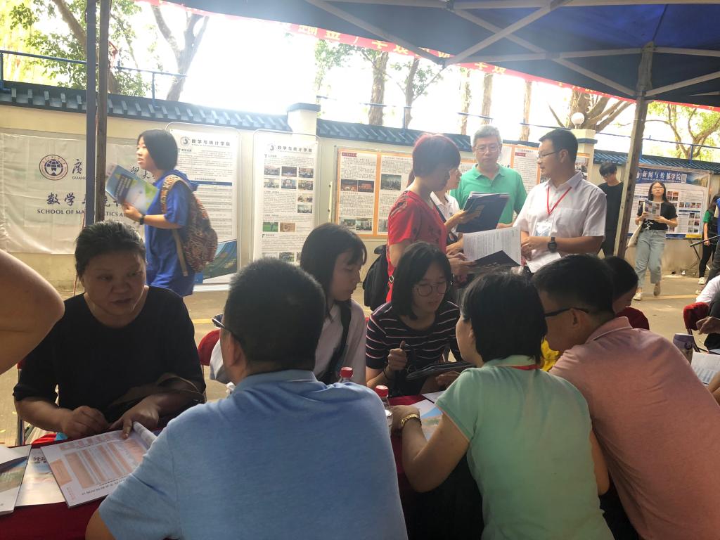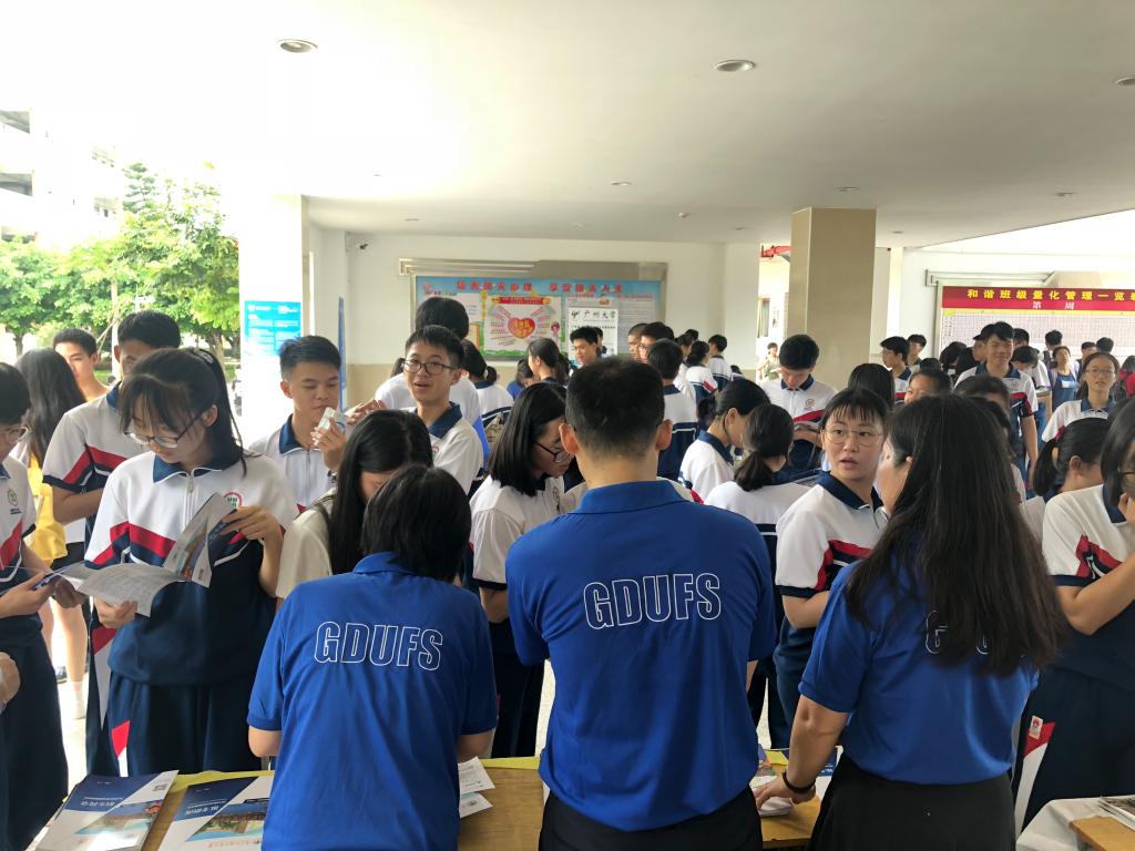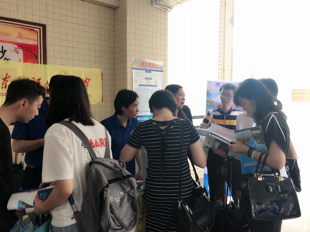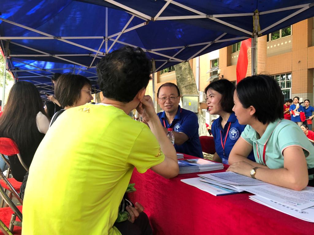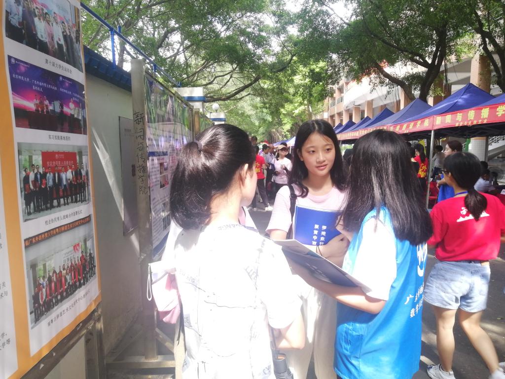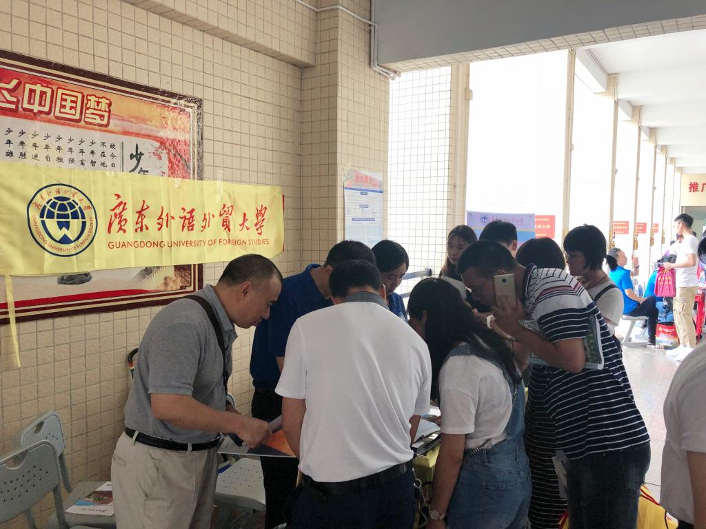 本网讯 6月22日,广东外语外贸大学第20届大学开放日在北校区举办,众多家长、考生顶着炎热的天气走近广外校园参观咨询。我院院长王军威、党总支书记苏冬燕、副院长龙会典、副院长袁媛、党总支副书记余海波、各系系主任、辅导员以及团学志愿者们分别在摊位、校道进行招生咨询。