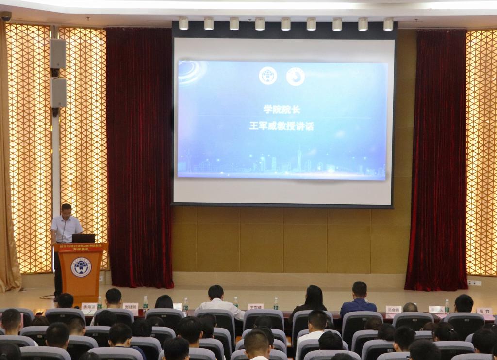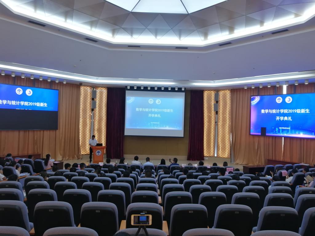 2019年8月27日下午,数学与统计学院于南校区八角楼召开2019级新生开学典礼。学院院长王军威教授、党总支苏冬燕书记、副院长袁媛老师、龙会典老师、党总支余海波副书记,学院各系部主任、办公室主任、全体辅导员、2019级全体本科及研究生新生参加典礼。典礼邀请了博时基金管理有限公司基金经理桂征辉先生、数字广东网络建设有限公司首席人力官萧展航先生以及2007级统计学专业校友、深圳前海墨白资产管理有限公司合伙人李澔东先生出席并发表演讲。典礼由学院党总支余海波副书记主持。