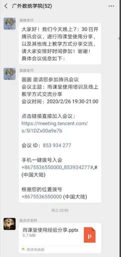 2月8日上午,通过学院微信群,向全院老师发送“腾讯会议”软件的使用指南,以及安装和使用教学视频。