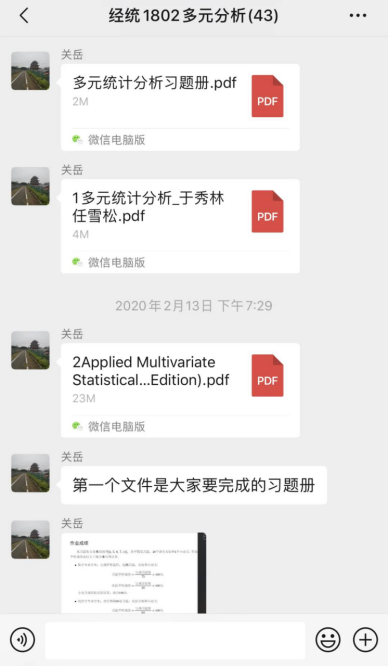 2月13日,学校的开学方案发布后,第一时间建立专业课程微信群,将专业课老师和学生联系起来,开通师生交流的通道,并请老师给学生们布置延迟开学期间的预习任务。