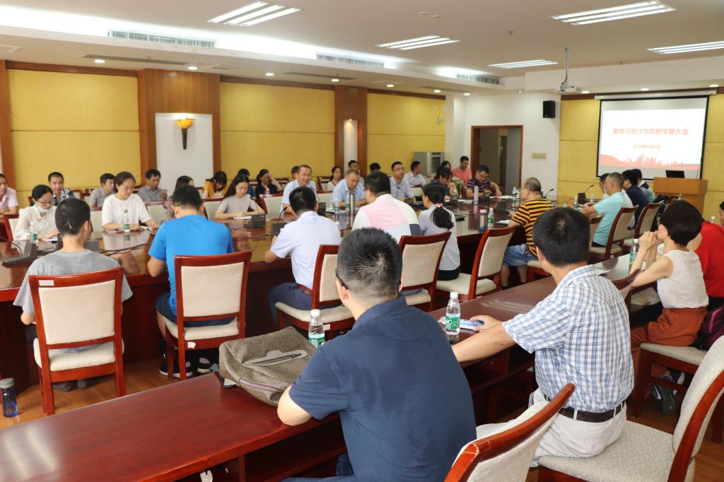 会上,院长王军威对新任党总支书记李江及新入职博士李光洁老师作了简要介绍,热烈欢迎他们加入数统大家庭。他对上学期及暑假期间,全院教职工克服新冠疫情影响高质量完成教育教学、学科建设、招生就业等工作表示衷心感谢。王军威对本学期的重点工作进行了总体部署:要坚持不懈做好人才培养工作,坚决做到疫情防控和教育教学两不误,确保学生健康安全成长,确保各项教育教学工作正常开展;加大高层次人才和普通岗位教师的引进力度,结合学科方向实施精准引进,鼓励老师们通过各种渠道为学院揽才;学院积极支持老师开展教研科研工作,以高质量的教育科研成果支撑学院人才培养和学科建设。他还对新学期开学初的教学工作、数学建模工作和教研项目申报等做了动员和部署。