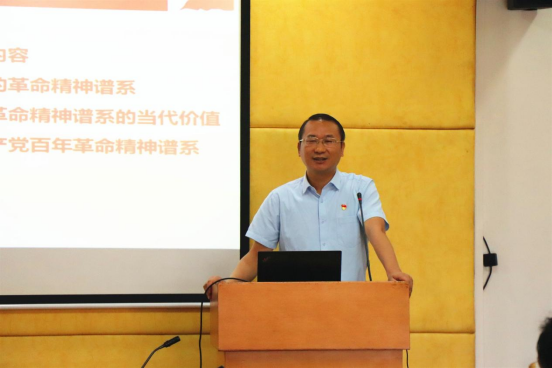 恰逢建党百年,在全党范围内开展党史学习教育之际,李江首先从明理、增信、崇德、力行四个方面阐述了青年学生学习党史的重要意义。他为同学们梳理了百年党史的脉络和经纬,分析了党史的主题主线和主流本质。他从党史中蕴含的革命精神谱系出发,为同学们详略得当地介绍了红船精神、井冈山精神、长征精神、延安精神、西柏坡精神、抗美援朝精神、焦裕禄精神、雷锋精神、两弹一星精神、载人航天精神、改革开放精神、抗疫精神,为同学们讲述了中国共产党百年革命精神谱系的当代价值,及如何弘扬中国共产党百年革命精神谱系。此外,他还结合热点事件,提出了同学们正确认识和科学评价党史上的重大事件、重要会议、重要人物所要采取的方法。