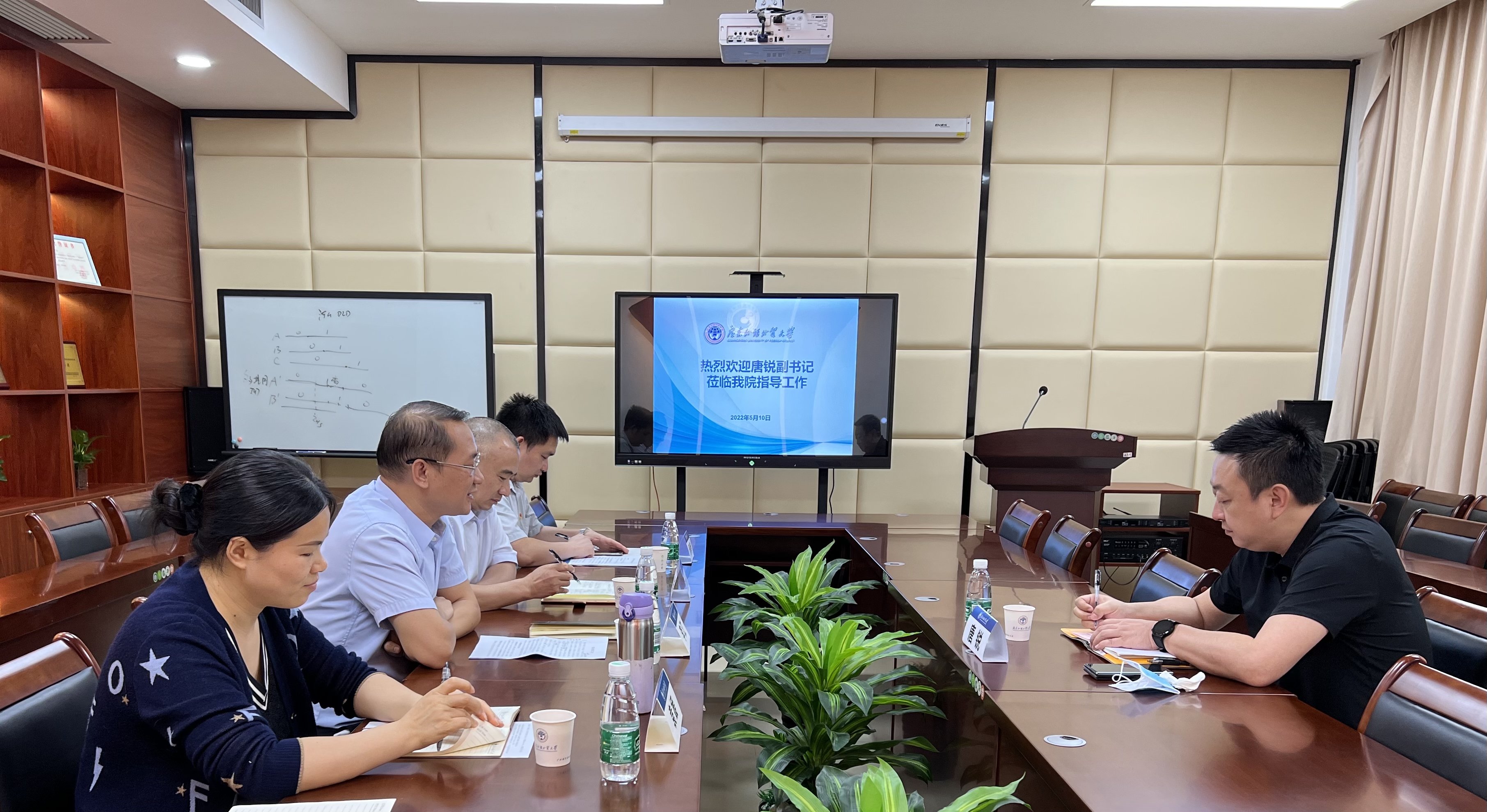 本网讯 5月10日下午,校党委副书记唐锐莅临我院指导工作。院党总支书记李江、副院长龙会典、袁媛、党总支副书记杨博出席了会议。