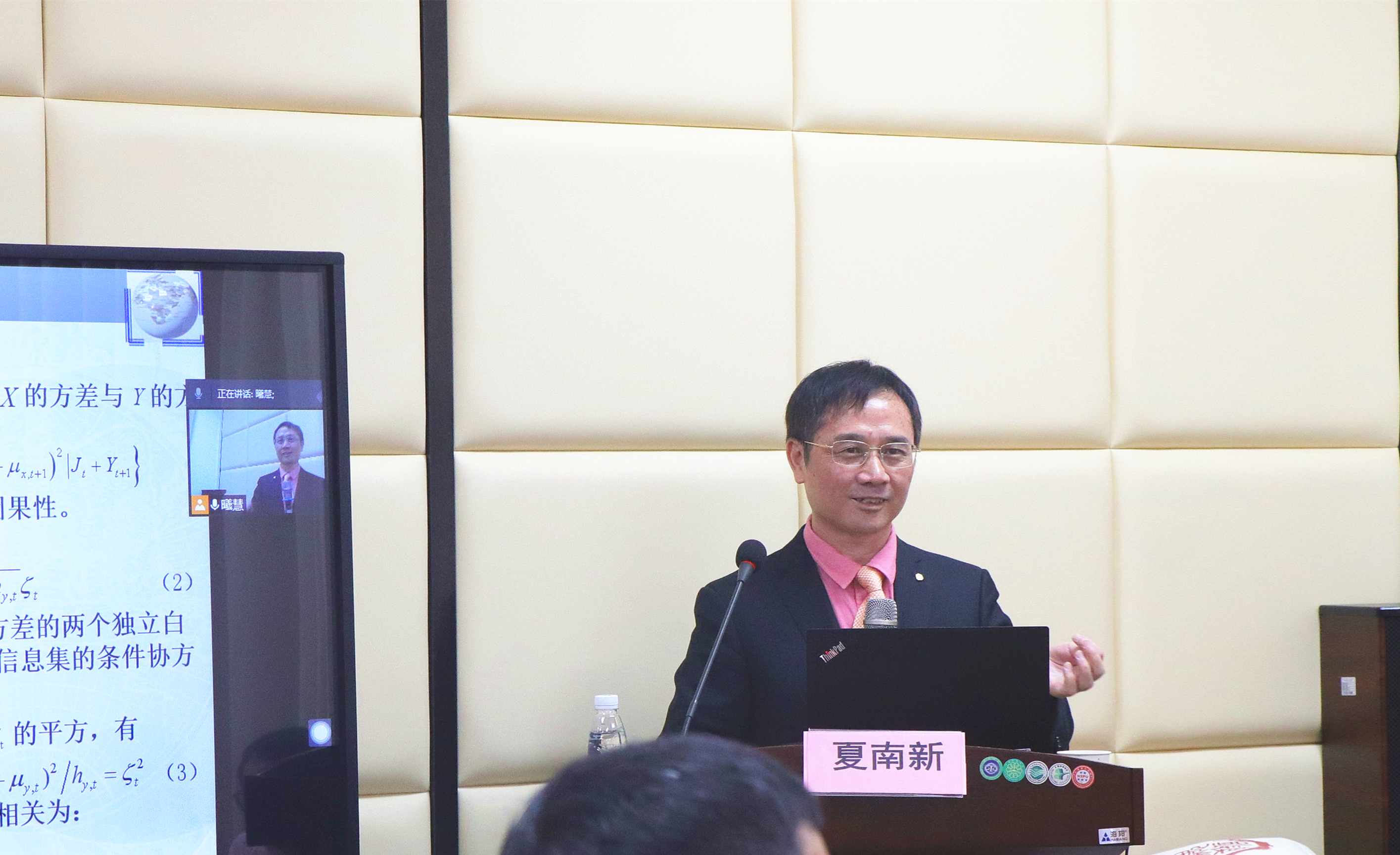本网讯 5月26日下午,由人事处、教师发展中心主办,数学与统计学院承办的著名教授论坛第555讲暨数学与统计学院“前沿学术论坛”第21讲在南校区院系楼152会议室和腾讯会议线上线下同步举行,本次论坛邀请了中山大学博士生导师、中国统计学会常务理事、广东省统计学会副会长夏南新教授为我校师生作题为“国际金融市场波动非线性因果性检验”的讲座,吸引了校内外70余名师生参与。讲座由学院副院长龙会典主持。