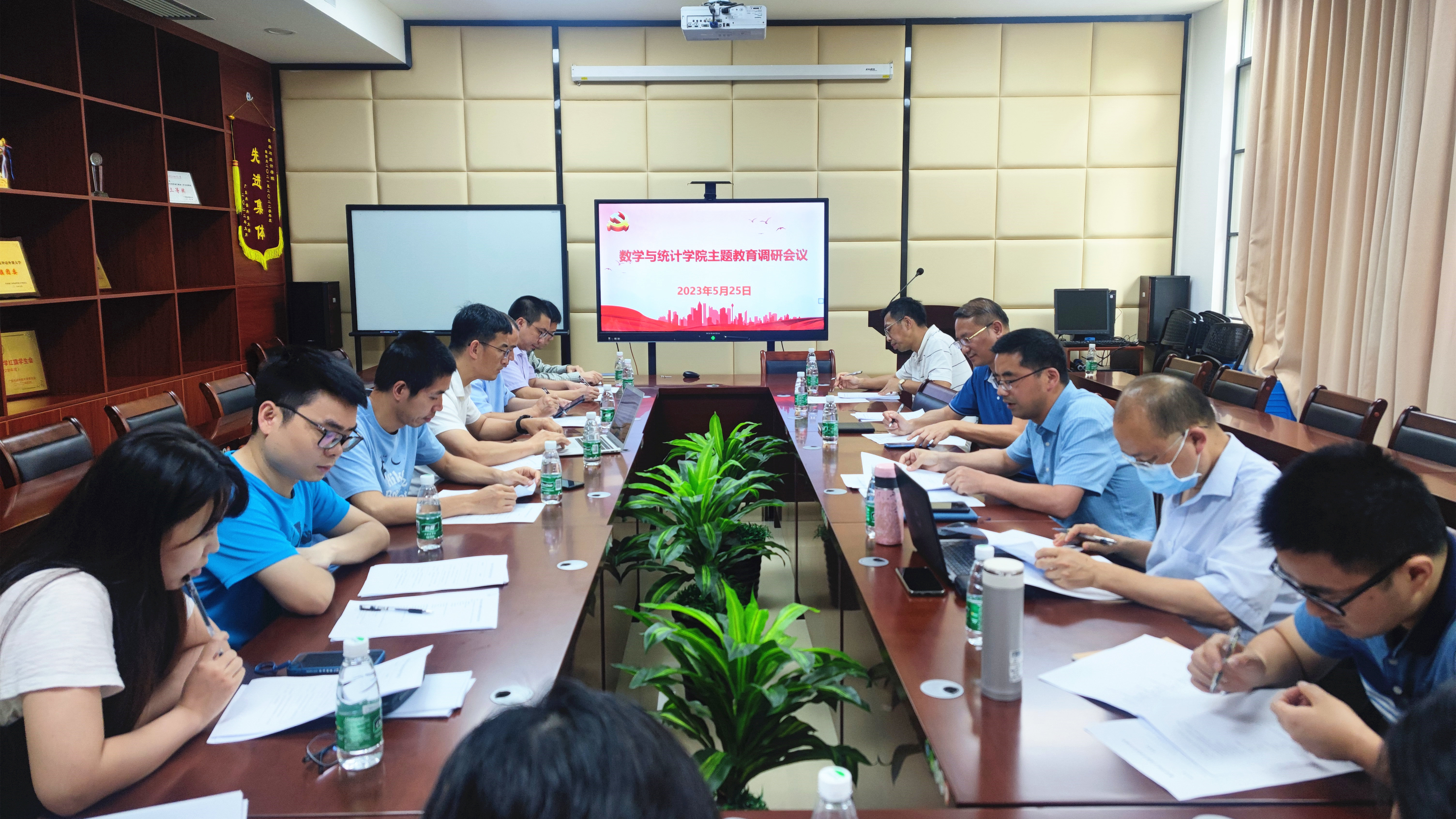 本网讯 5月25日下午,我院在南校区院系楼152会议室召开“数统学院主题教育专题调研会”,会议由学院党委副书记、院长王军威主持。学院党政领导班子成员、党支部书记、各系部办主任、教职工代表等参加了本次调研会。