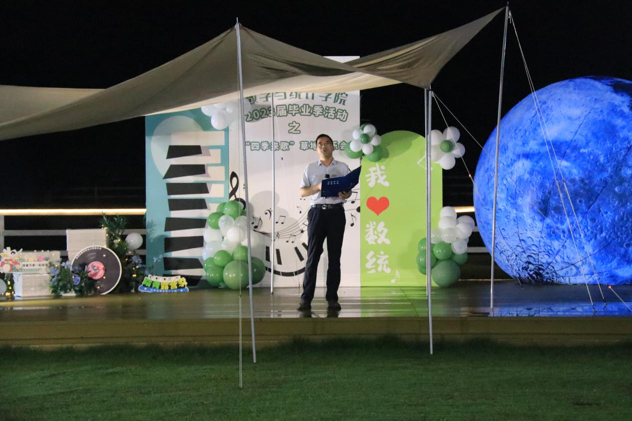 2023年5月18日晚,数学与统计学院“四季来歌”毕业季草地音乐会在长洲岛都市农业公园举行。数学与统计学院院长王军威、党委副书记谭秋云、辅导员薛达、叶依莜、原辅导员陈宣惠、2023届毕业生及家长代表、校友代表近200人参加本次活动。