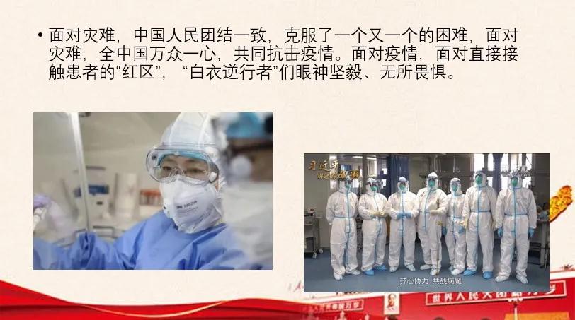 来自经济统计学1902班的陈鑫渠同学,通过小主题“防疫当下——最可爱的人在行动”,向我们介绍了在防疫中最美的逆行者们。在护佑生命的主旋律中,他们唱响了“战役”的“精神战歌”,“不计报酬,不计生死”,他们因为使命在肩,所以勇往直前,他们的逆行之举,感动着我们。