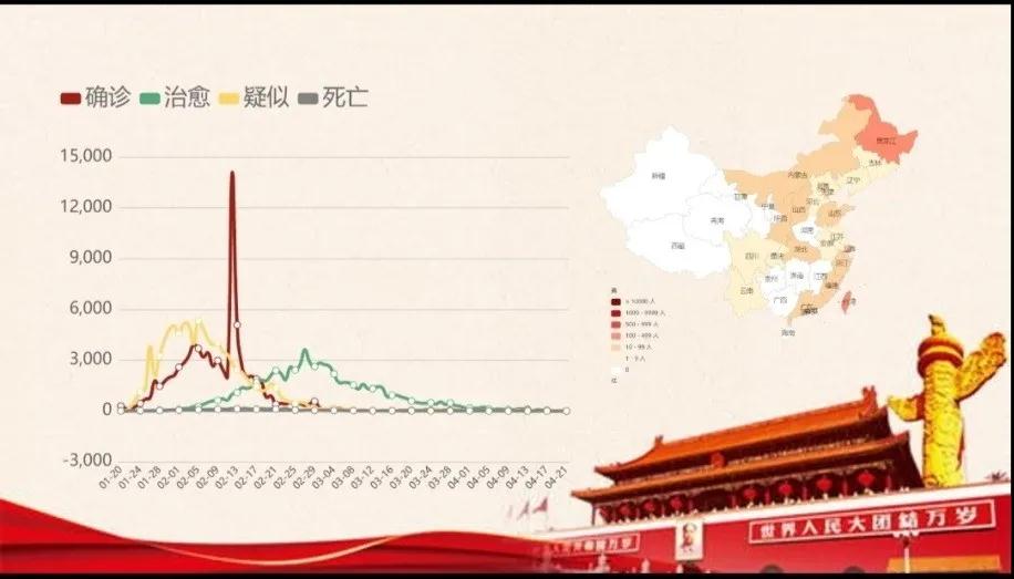 来自经济统计学1802的赖紫嫣同学,结合专业特色通过数据可视化的形式向我们介绍了自疫情爆发以来全国各省确诊、治愈、疑似及不幸死亡的患者数量的波动情况,既关注到了时事也深化了所学的知识,又做到以赛促学,学以致用。