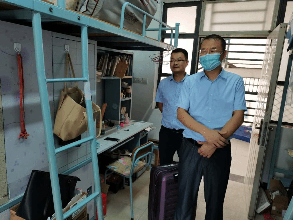 学院党总支书记李江、副书记余海波来到学院报到点和学生宿舍,详细了解校园出入管理、人员管控、物资储备情况,并与学生亲切交谈,询问大家的假期生活、返校途中防护等情况。李江书记向返校的学生们表示欢迎和慰问,叮嘱大家以饱满的精神状态和严格的自律意识,在做好疫情防控的同时,珍惜时光,潜心学业,全身心投入到新学期的学习、生活之中。