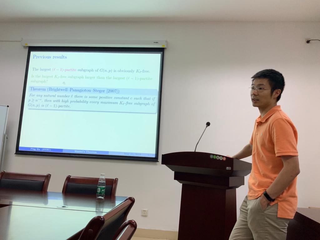 胡平简介: 中山大学副教授,本科毕业于北京大学数学系,2014年8月在美国伊利诺伊大学香槟分校(University of Illinois at Urbana-Champaign)获得数学博士学位,2014年10月至2017年8月在英国华威大学(University of Warwick)任研究员(Research Fellow),2017年入职中山大学任副教授。胡平一直从事组合数学领域中极值组合方向的科学研究,在领域内的Ramsey理论,Turan理论,染色问题等方向均有成果。目前论文均发表在图论领域的国际一流期刊上,其中在极值图论领域顶级期刊Journal of Combinatorial Theory, Series B发表论文三篇,Random Structures & Algorithms发表论文一篇,并在极值图论领域一流期刊Combinatorics, Probability and Computing发表论文两篇,Journal of Graph Theory发表论文一篇,European Journal of Combinatorics发表论文两篇。