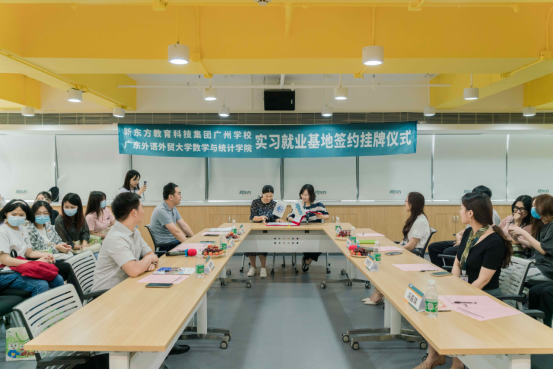 为进一步深化校企合作,实现专业与产业、企业对接,加强学生社会实践能力的培养。5月19日下午,我院副院长袁媛、党总支副书记杨博带领学院师生代表赴广州新东方培训学校进行参观交流。新东方教育科技集团广州学校校长助理张宁宁、人力资源部总监马艳红、招聘负责人陈烁莎接待了我院师生代表。