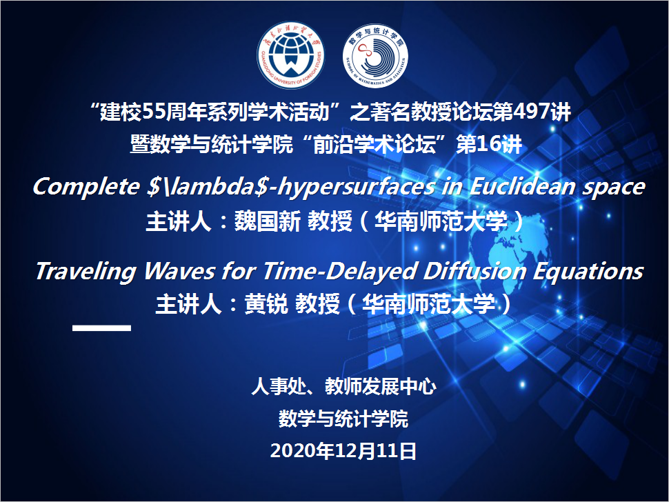 报告人简介:魏国新,华南师范大学教授,博士生导师,广东省珠江学者特聘教授,在 Trans. Amer. Math. Soc.,Comm. Anal. Geom.,Calc. Var. Partial Differential Equations, J. Differential Equations等国际学术期刊上发表SCI论文40余篇,主持(完成)多项国家级和省部级科研基金项目。