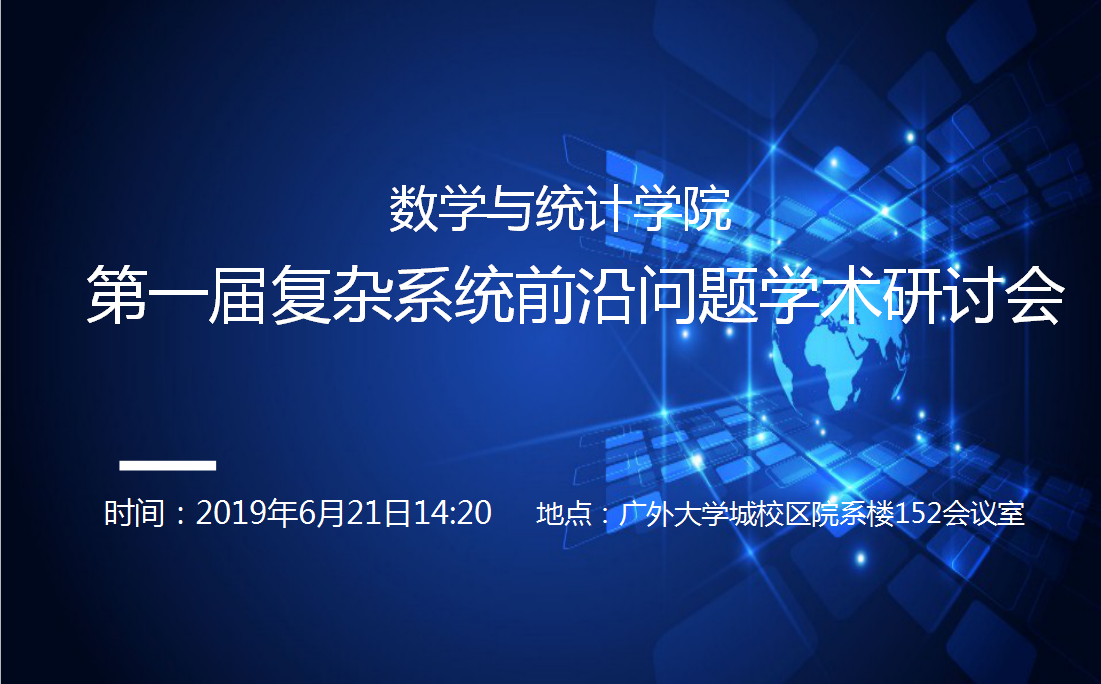 为推动数学、统计学与其他学科的交叉研究,促进复杂系统相关研究领域专家学者之间的学术交流,为我校师生搭建交流平台,广东外语外贸大学数学与统计学院将于2019年6月21日(周五)下午在大学城校区举办“第一届复杂系统前沿问题学术研讨会”。会议将邀请国内外数学、统计学等领域专家作学术报告,并开展学术讨论。
