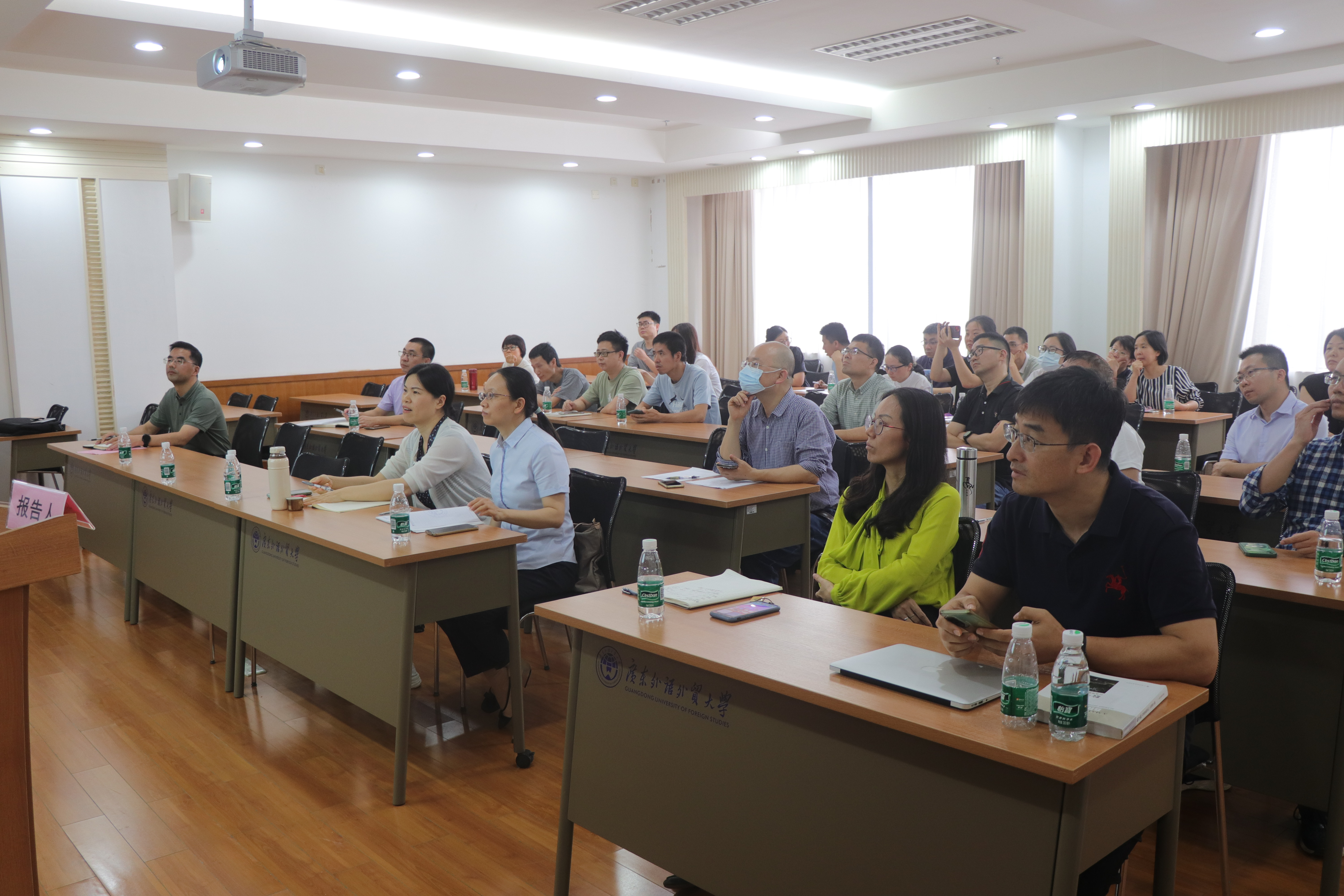 本网讯  5月9日下午,我校教学发展论坛第25讲在大学城校区举办,广东省骨干教师培训对象、广州大学附属中学朱惊涛老师以“广东高考数学卷模式变革以及对师范生培养的启示”为主题作分享。本次讲座由广东外语外贸大学人力资源部(教师发展中心)主办、数学与统计学院承办。数学与统计学院应用数学系主任杨超主持讲座并做联合分享。我校学科教学(数学)硕导、数学与应用数学(师范)专业任课教师参加了本次讲座。