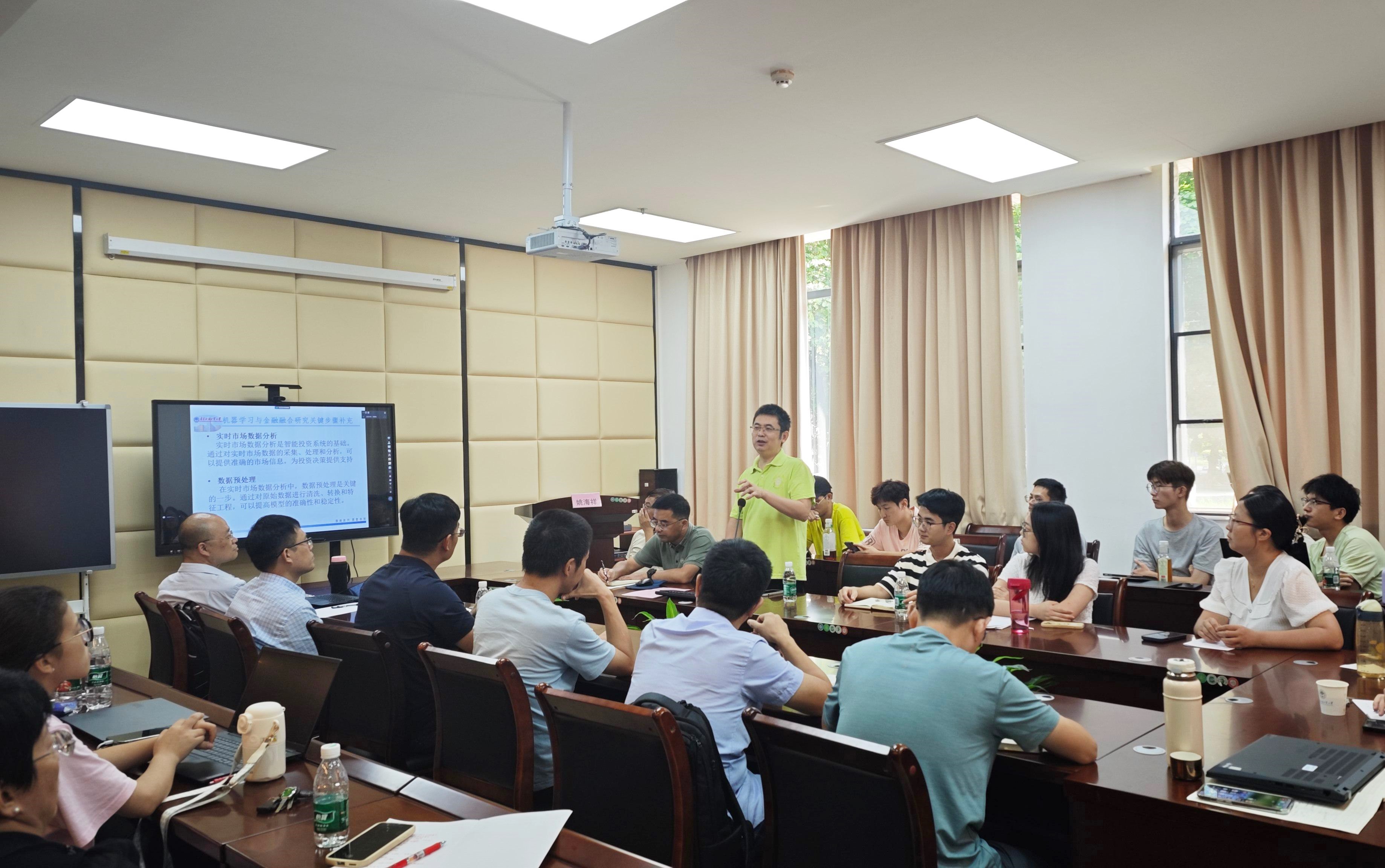 分享结束后,姚海祥与现场师生展开了热烈的讨论,深入探讨了模型驱动如何与金融相结合、实证检验如何与计量模型相结合等问题,并为参会学生在文献阅读选择和升学深造等方面提出了宝贵的建议。本次报告是我院数学统计与经济金融交叉学科研究系列讲座的第一场,今后我院将持续开展交叉学科系列讲座,进一步促进学院师生的科研交流与合作。