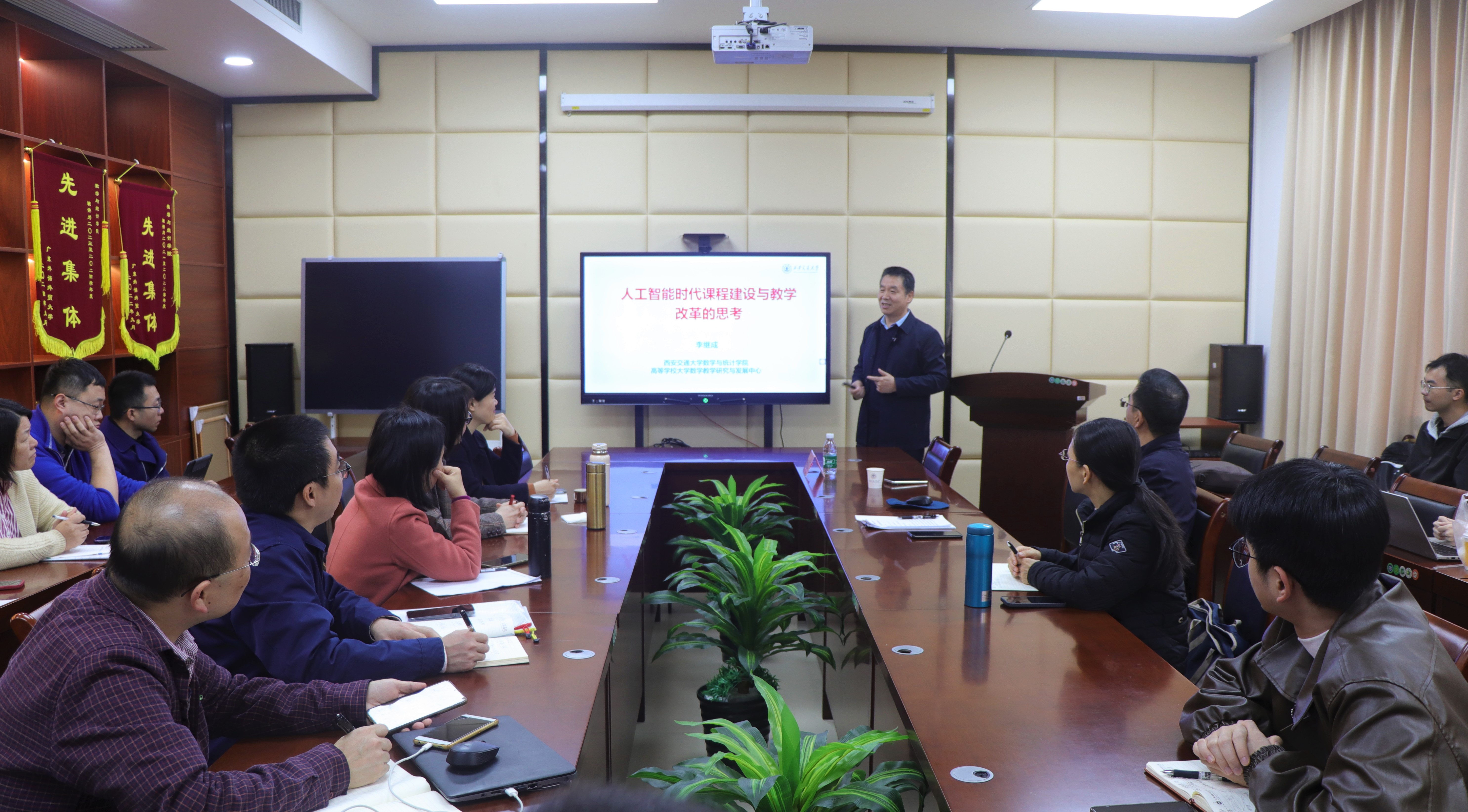 本网讯 12月13日上午,国家级教学名师、教育部高等学校大学数学课程教学指导委员会秘书长、西安交通大学李继成教授应邀做客著名教授论坛681讲暨数学与统计学院“数学教育论坛”第3讲,在大学城校区作题为“人工智能时代课程建设与教学改革的思考”的专题讲座。本次讲座由人力资源部(教师发展中心)主办,数学与统计学院承办。系部主任、课程负责人,及学科教学(数学)硕士研究生聆听了讲座。