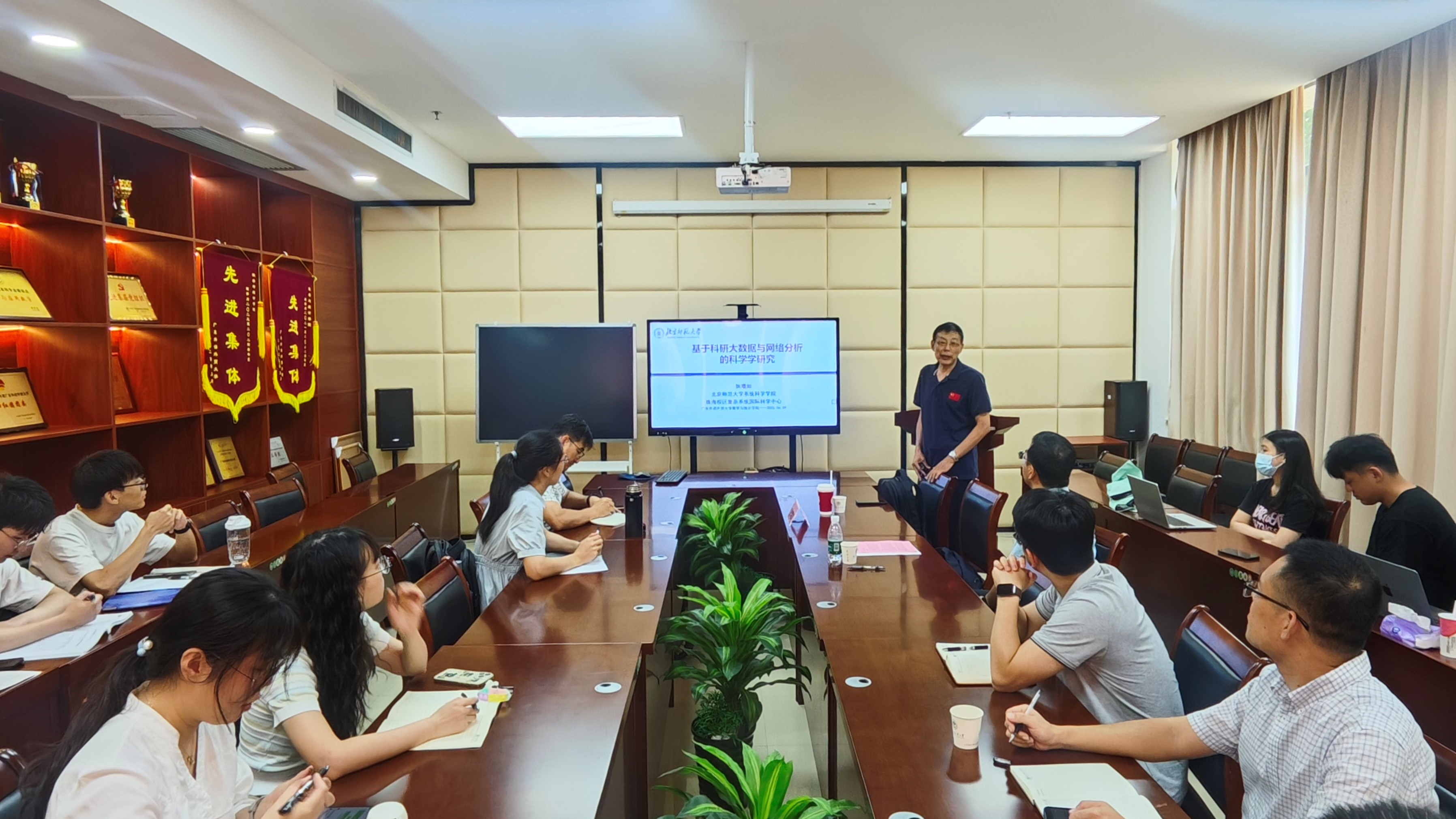 本网讯 6月10日上午,数学与统计学院“前沿学术论坛”特邀北京师范大学狄增如教授,在大学城校区院系楼152室作专题学术报告。 本次报告以“基于科研大数据与网络分析的科学学研究”为主题,吸引了校内多名师生参与。