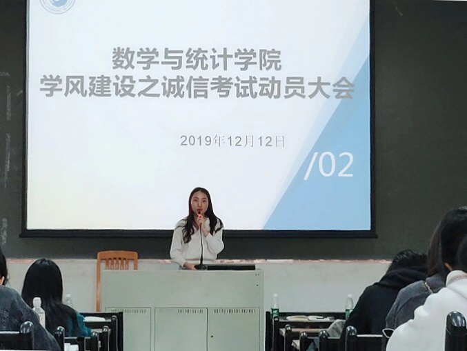 12月12日晚,数学与统计学院在E204举办国际交流项目宣讲会暨考前诚信教育大会。学院副院长袁媛、党总支副书记余海波和辅导员薛达、陈宣惠和学院大一至大三学生参加本次大会。本次大会还邀请了我院与考文垂大学合作的国际交流项目的商务拓展经理汤鑫发言。陈宣惠主持本次大会。