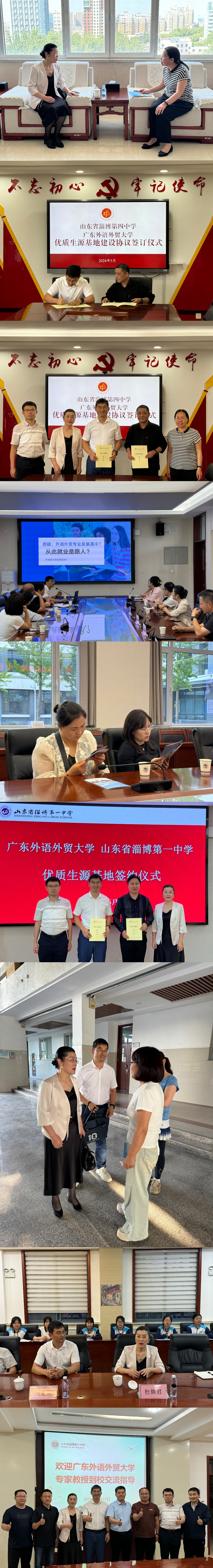 5月13日,数统学院副院长刘建熙、商英学院党委副书记杜焕君、数统学院统计系主任魏勇博士等一行赴淄博市第四中学、淄博市第一中学、淄博市第六中学分别开展本科招生宣传并签署优质生源基地协议。刘建熙一行受到三所学校主要负责人的热烈欢迎和大力支持,并通过校际合作座谈会、考生家长见面会、专题招生宣讲会等多种形式,与校方领导、考生家长、中学学生进行深入交流,系统性介绍了广外的办学历史、学科排名、国际特色、就业去向和薪酬待遇等方面内容,并针对考生和家长关心的录取分数、录取名额、志愿填报技巧等热点问题,进行逐一回应和解答。现场气氛热烈,招生宣传效果显著!