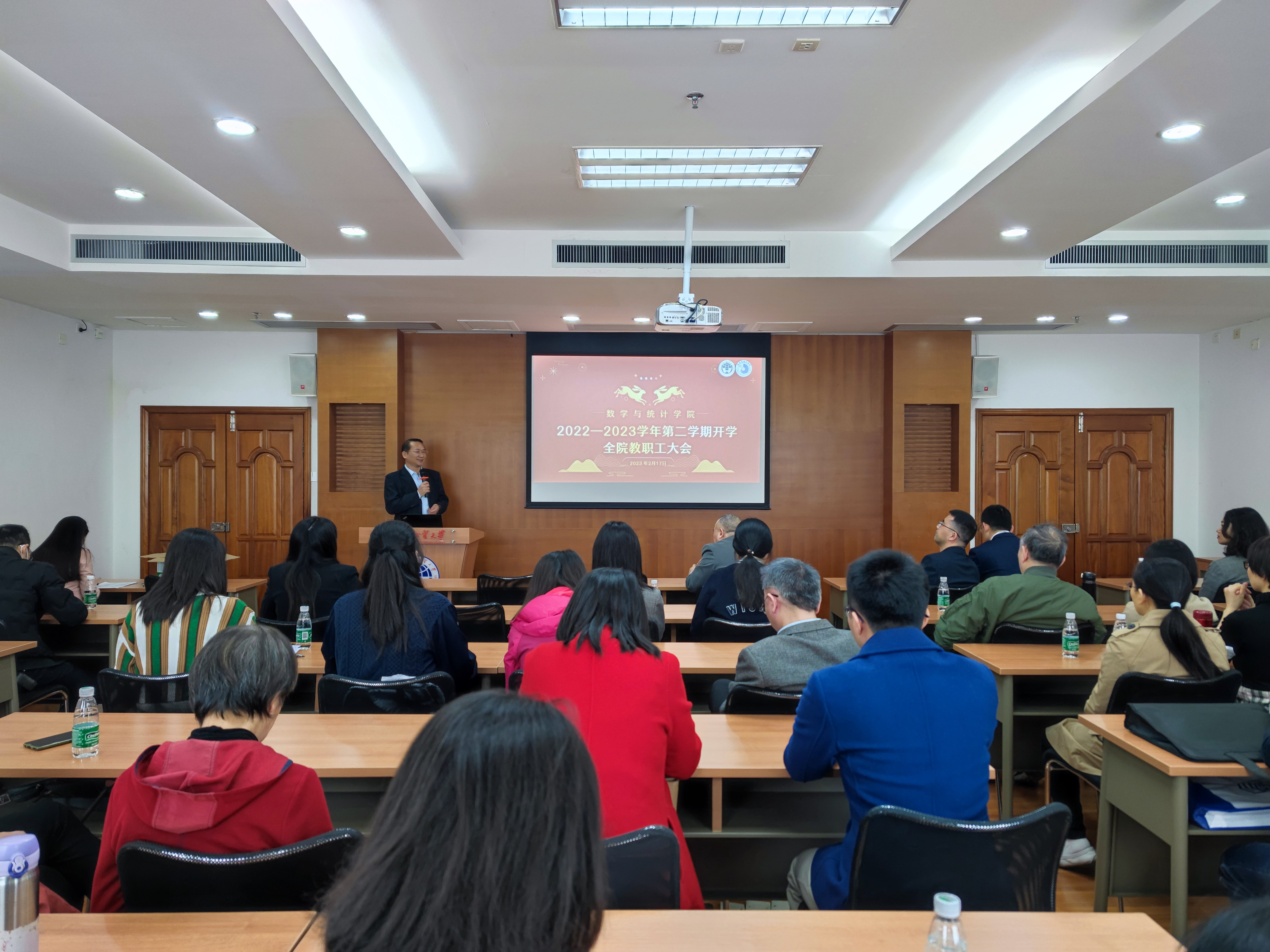 院长王军威总结了2022年学院工作,指出学院各项工作有所进步,质量提升,亮点不少。王军威在布置安排新学期重点工作时表示,学院将继续以“立德树人”为目的,以党的二十大精神为指导,强化工作责任意识和风险意识,提升学院管理治理能力,扎实推进教育教学优化、科研等各项工作高质量发展。