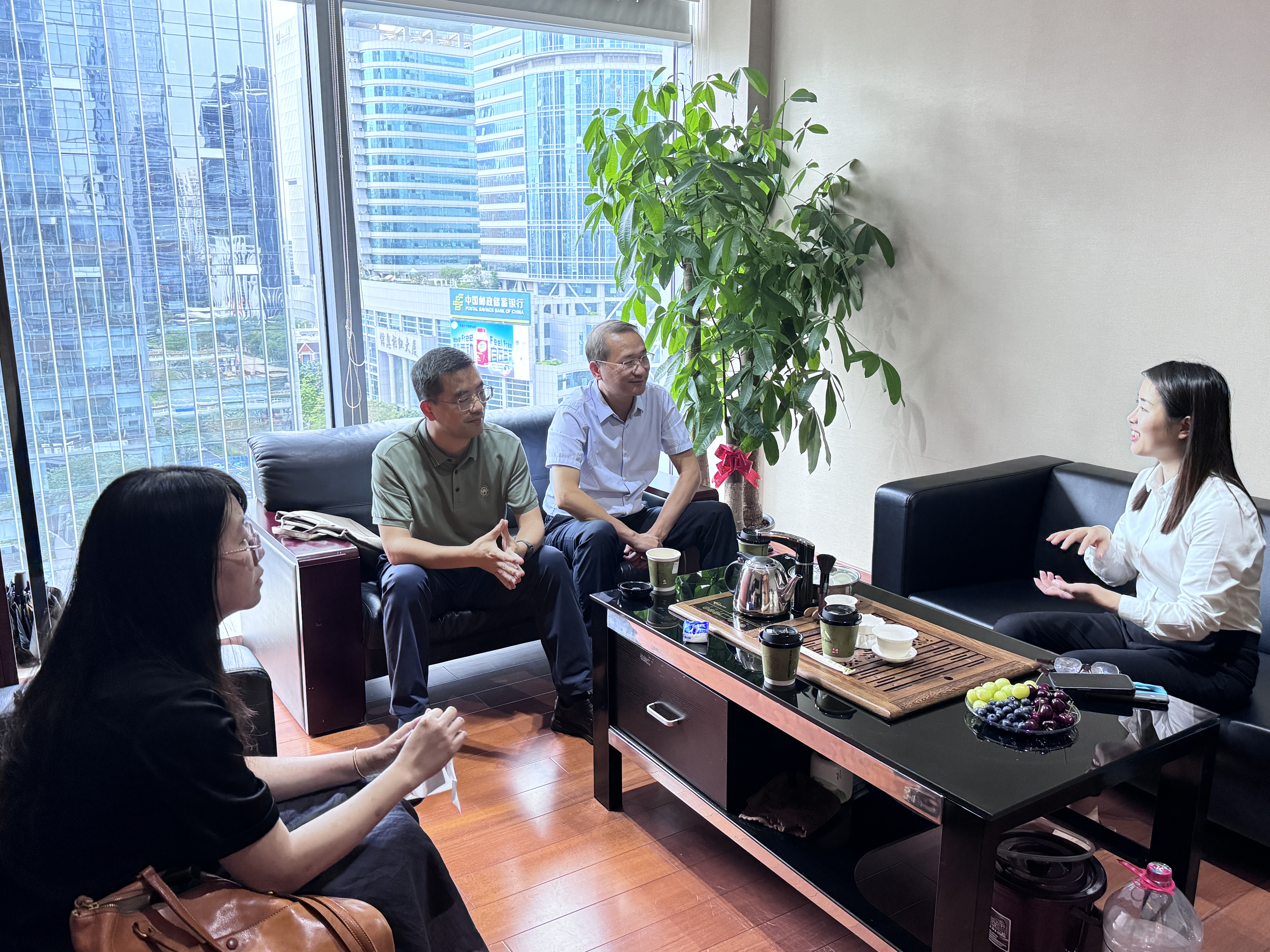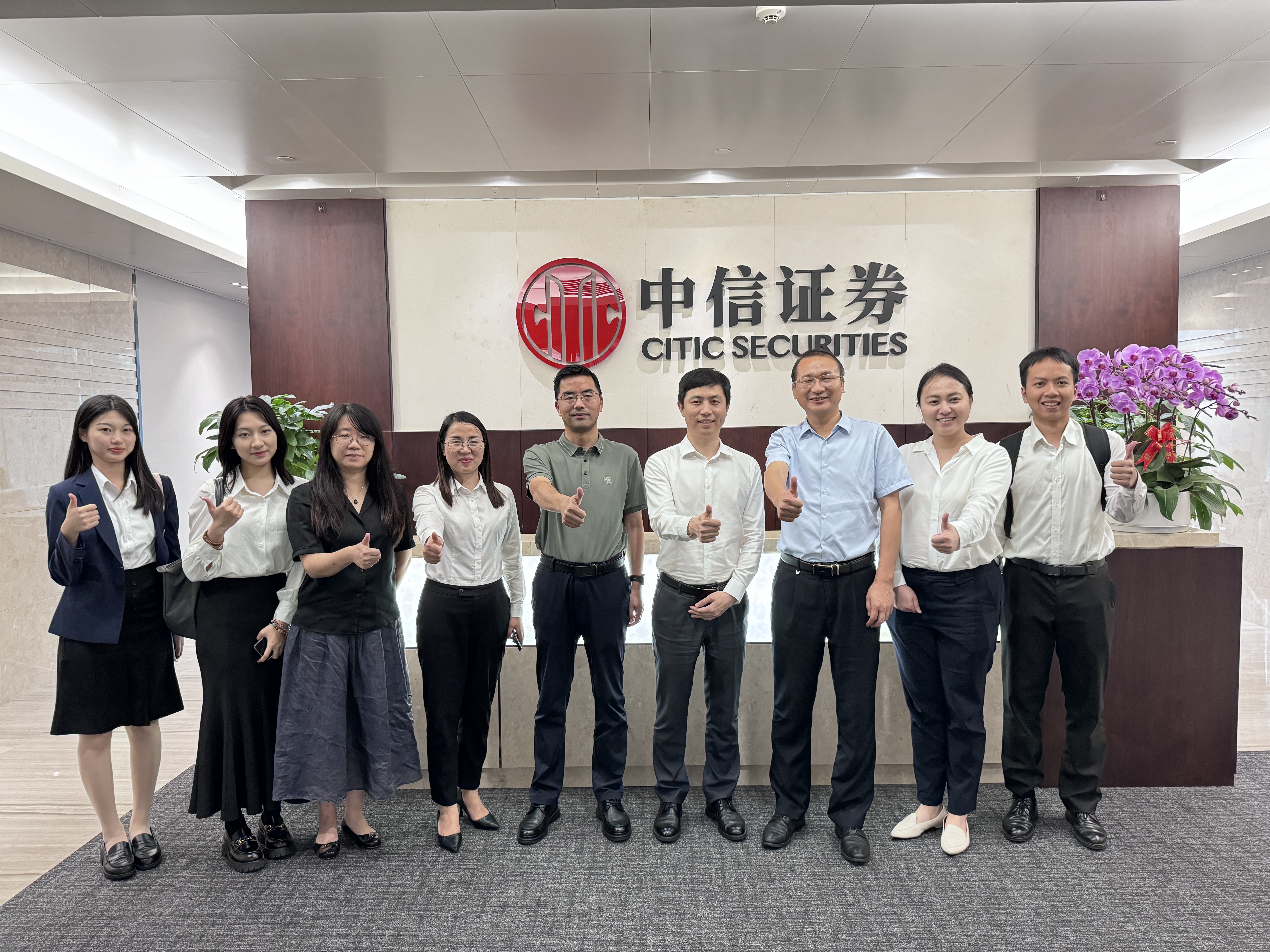 本网讯 4月18日下午,我院党委书记李江、院长王军威、党委副书记谭秋云、团委书记薛达、行政秘书赵紫昕一行赴中信证券深圳分公司开展交流合作。