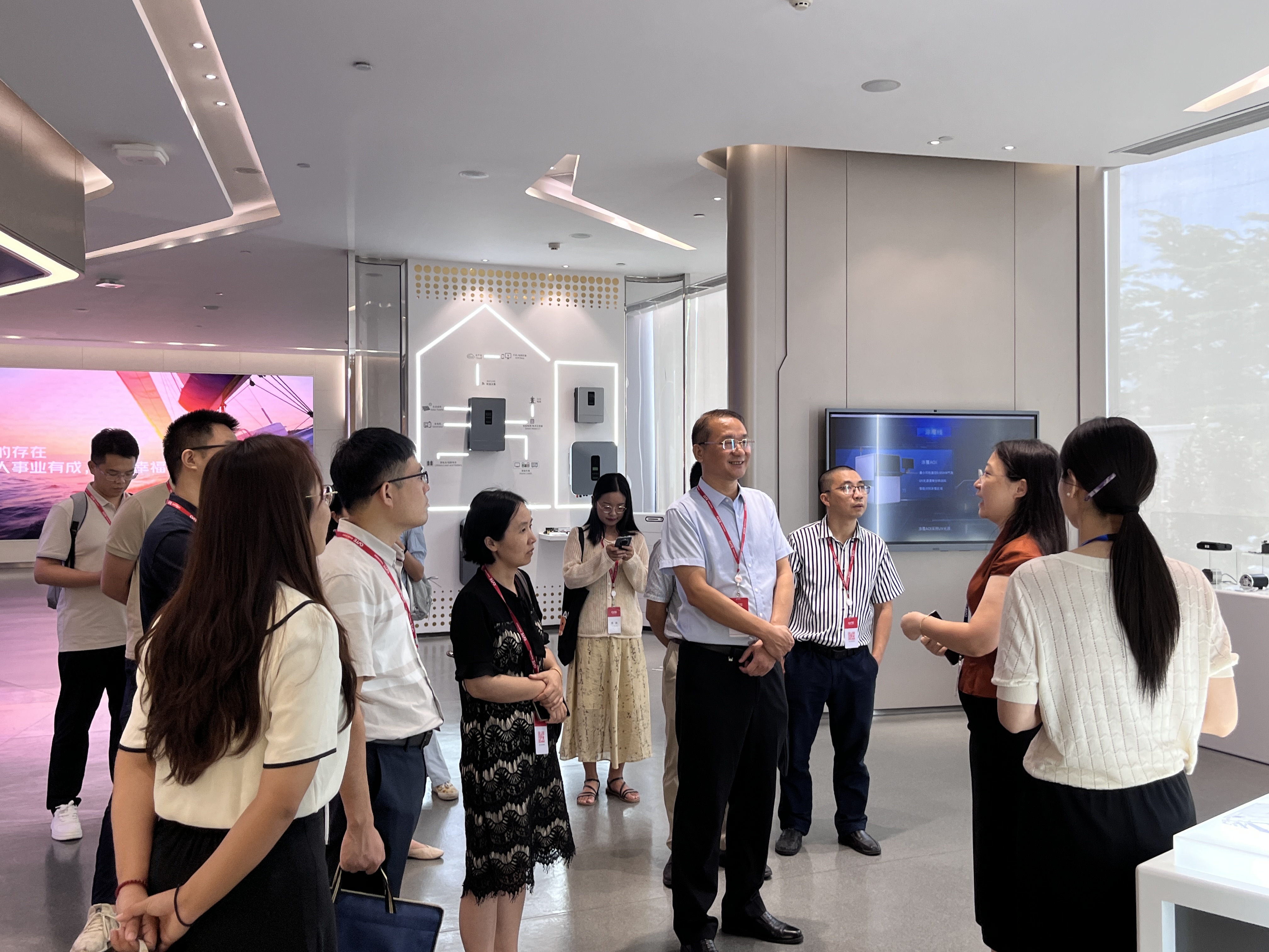 本网讯 7月2日下午,我院领导班子成员、系部主任、党支部书记一行13人,在党委书记李江的带领下前往广州视源电子科技股份有限公司(以下简称视源股份)CVTE第二产业园进行访企拓岗。广州开发区、黄埔区校友会会长刘叶,常务副会长、视源股份首席风控官吕丹凤,副会长李澔东、池晓霓,秘书长李卓彬,理事张婧、林晓兰、陈嘉欣、周铸焜以及在视源股份工作的校友张一鸣、佘克蕾等一起出席了交流会。