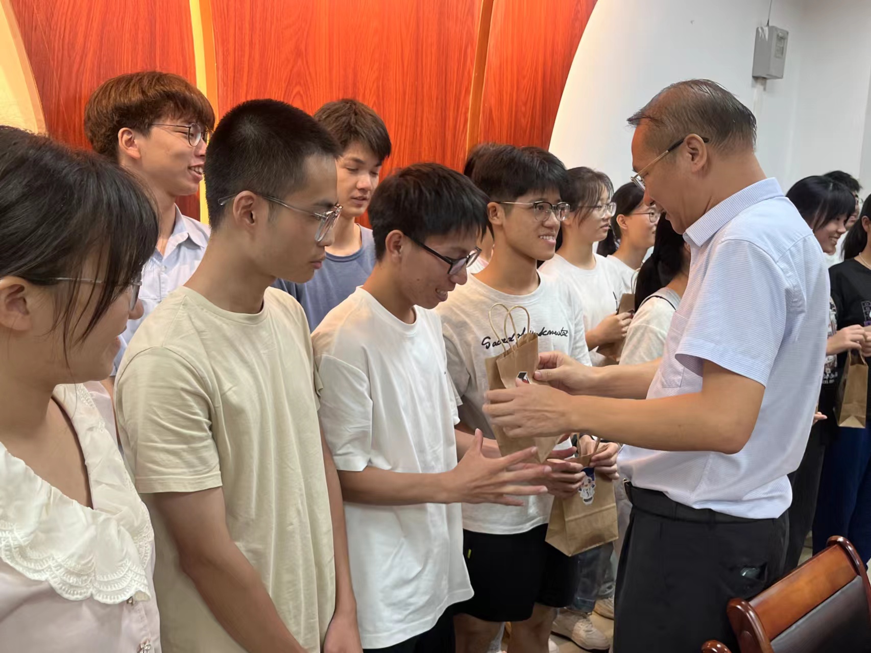 活动最后,李江书记和谭秋云副书记代表学院向每位参加活动的同学赠送了广外定制中秋月饼,并表达了学院对大家的深切关怀和美好祝愿。