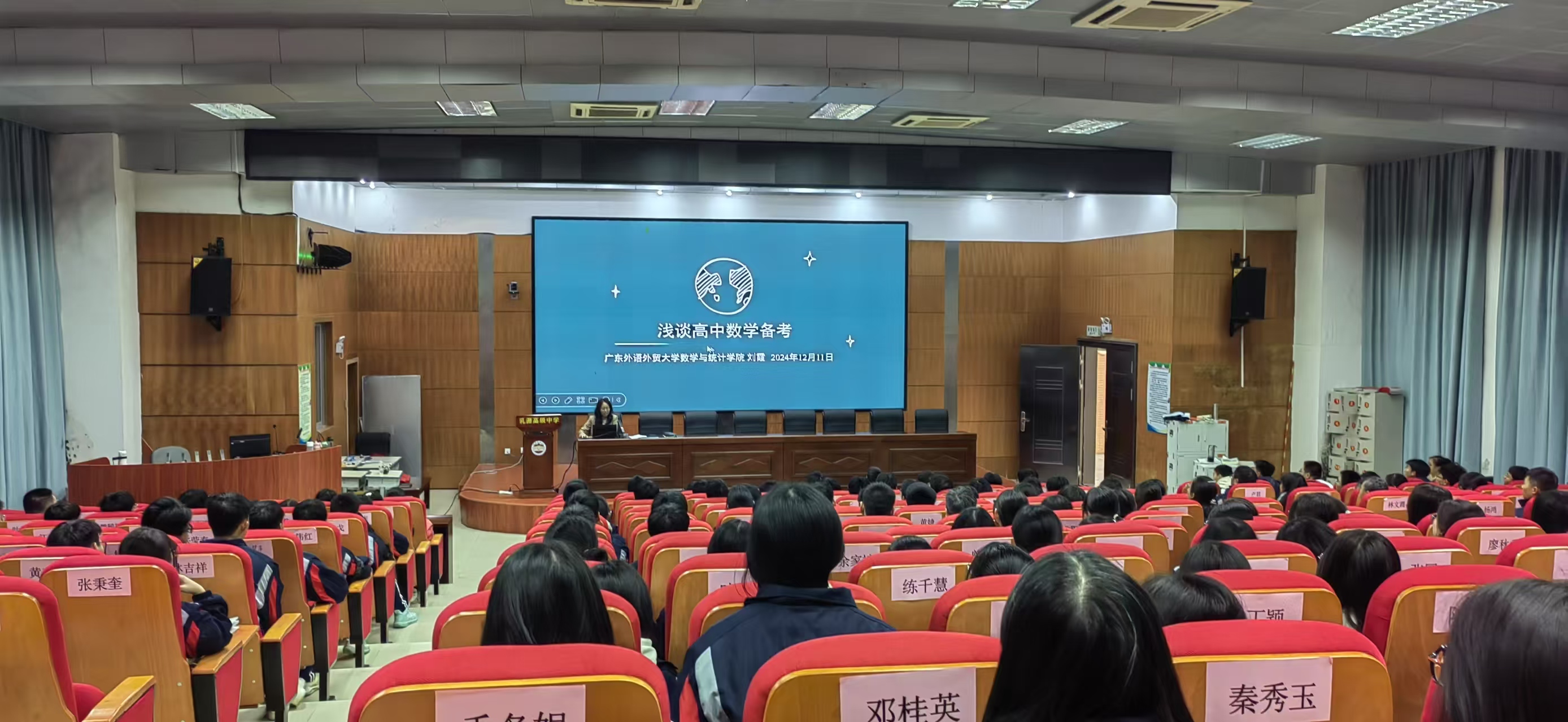 会上,李江从历史沿革、学科专业建设、师资队伍等方面介绍了学院情况,期望以此次交流为契机加强沟通协作,助力推进乳源高级中学数学学科教育教学质量的提升。刘杰里介绍了学校生源情况,并围绕数学学科建设、数学教师队伍建设及学生培养提出了目前学校存在的困难。会后,我院刘霞副教授分别为学校高三、初三学子做数学备考专题讲座,讲座反响热烈。