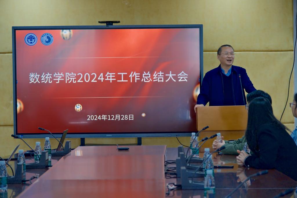 院长王军威在总结发言中首先对学院本学期取得的成绩表示肯定,对全体教职工的辛勤付出表示感谢。他指出,学院的发展离不开全体教职工的共同努力和团结协作。他强调,未来学院将继续深化教育教学改革和科研创新,探索人工智能赋能数统学科的创新发展,加强师资队伍建设和学生综合素质培养,推动学院各项事业不断迈上新的台阶,希望全体教职工能够继续保持昂扬向上的精神状态和务实创新的工作作风,为学院的发展贡献智慧和力量。