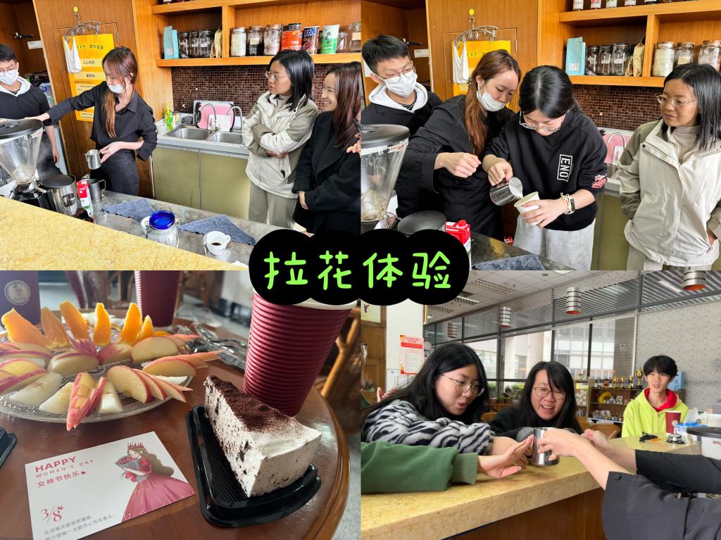 活动伊始,李江书记为到场女教师送上鲜花,致以节日问候,感谢她们在教育事业中的辛勤付出。随后,仲维维老师带来主题讲座《园丁的自愈花园:教师的自我关怀与心理调适》,从专业角度剖析教师职业压力,分享自我调适技巧,助力女教师提升心理韧性。在咖啡文化体验环节,老师们通过咖啡拉花的教学与实践,感受咖啡制作的乐趣与文化内涵。活动现场啡香四溢,笑语不断,为平日忙碌的老师们提供了放松身心、交流情感的平台。