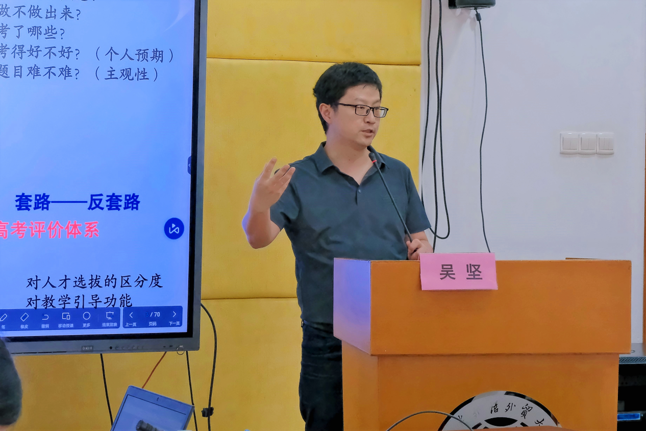 会议第二阶段邀请了校外导师代表、广州市教育研究院数学教研员吴坚作题为“2025年高考数学新导向及其对数学教育研究生培养的启示”的主题报告。报告中,吴坚通过对2025年高考数学试题进行评析,从政策导向、教学实践和教研创新等维度进行了深入分析,以教考衔接角度反思中学数学教学存在的主要问题,提出改进教学的指导建议,并给出数学教育研究生培养的启示。随后研讨环节,与会师生就数学教育论文撰写、教学方法、研究生实习实践等问题展开了热烈交流讨论。