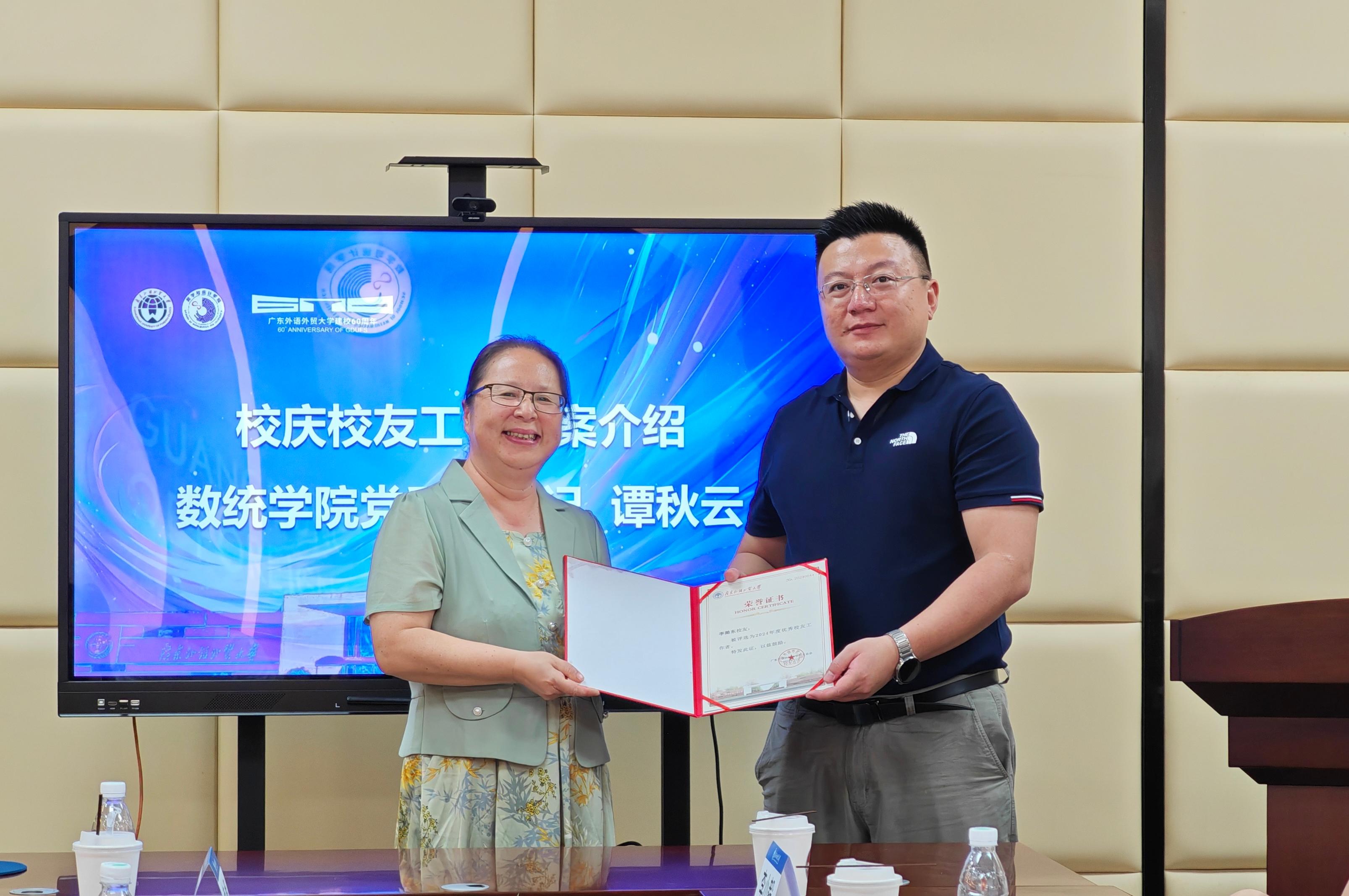 郝建萍为李澔东颁发“优秀校友工作者”荣誉证书