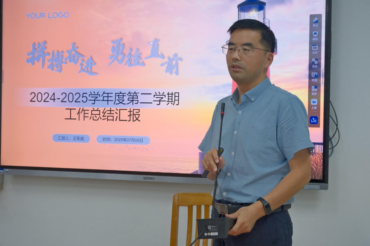 最后,王军威院长对学院2025年上半年的工作进行了全面总结,并对下半年的重点工作进行了部署。他充分肯定了学院在师资队伍建设及人才引进、学科专业建设进展、人才培养、科研服务等方面取得的成绩,对暑期工作提出“不松懈,不停歇”的要求,希望全院教职工在劳逸结合、关注健康的前提下,再接再厉,接续奋斗,以新成果推动学院事业再上新台阶。