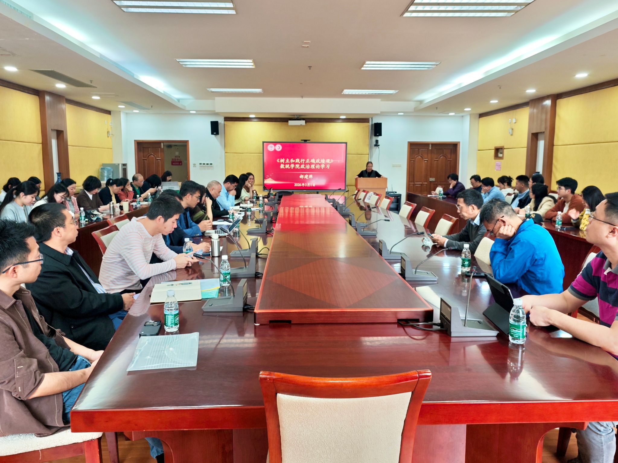会议伊始,郝建萍带领全体教职工开展“树立和践行正确政绩观”政治理论学习。她传达了中共中央办公厅印发《关于在全党开展树立和践行正确政绩观学习教育的通知》精神,强调正确政绩观以及正确政绩观给教育工作者的启示,明确要将正确政绩观融入教育教学、科研创新全过程,坚守为党育人、为国育才初心,以实绩赋能学科发展、人才培养与学院高质量发展。