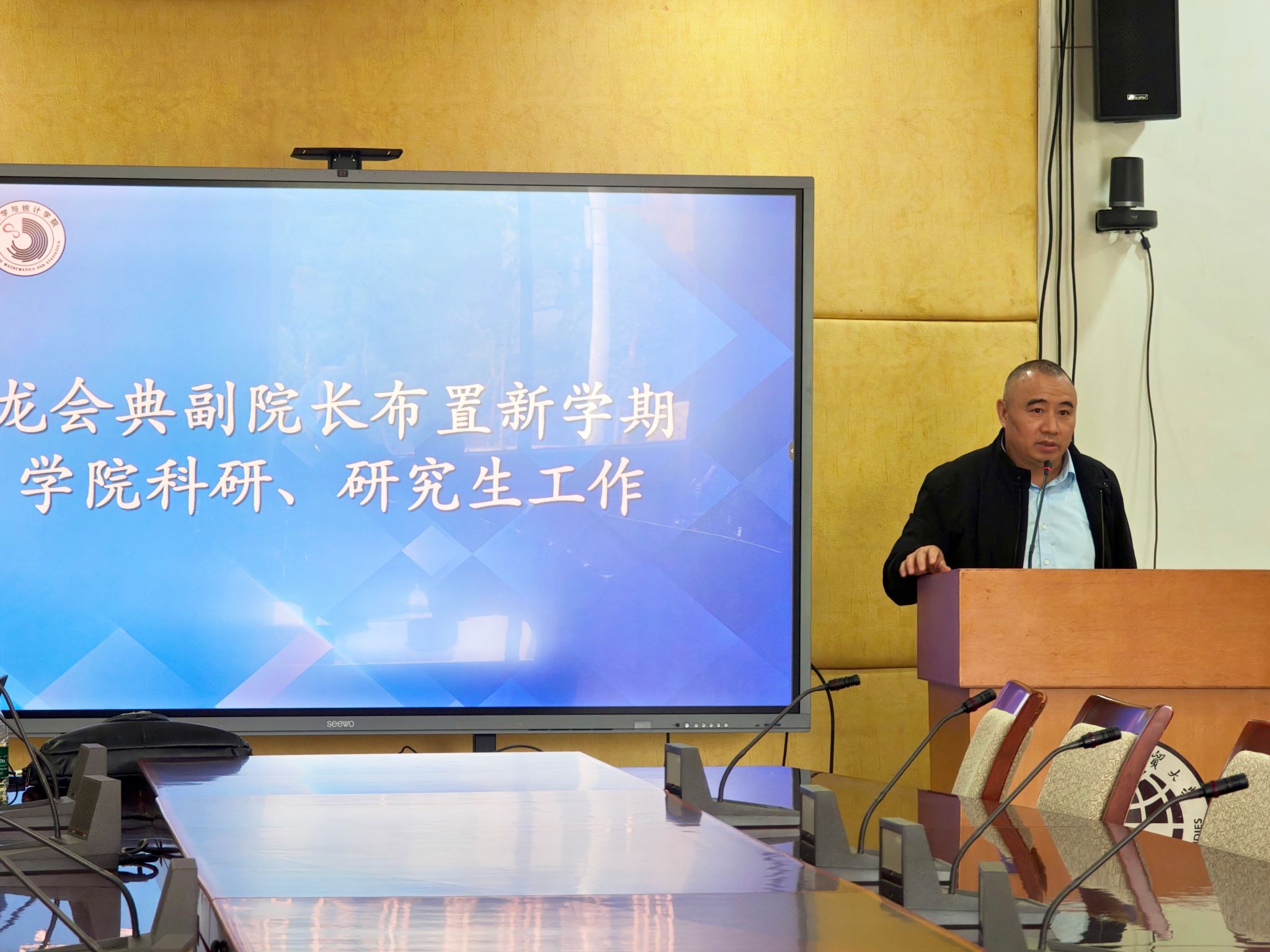 副院长龙会典聚焦学科建设核心任务,明确新学期将重点推进统计学、应用统计等学位授权点评估工作,强化国家级项目申报培育与高水平论文产出,优化研究生培养过程管理。